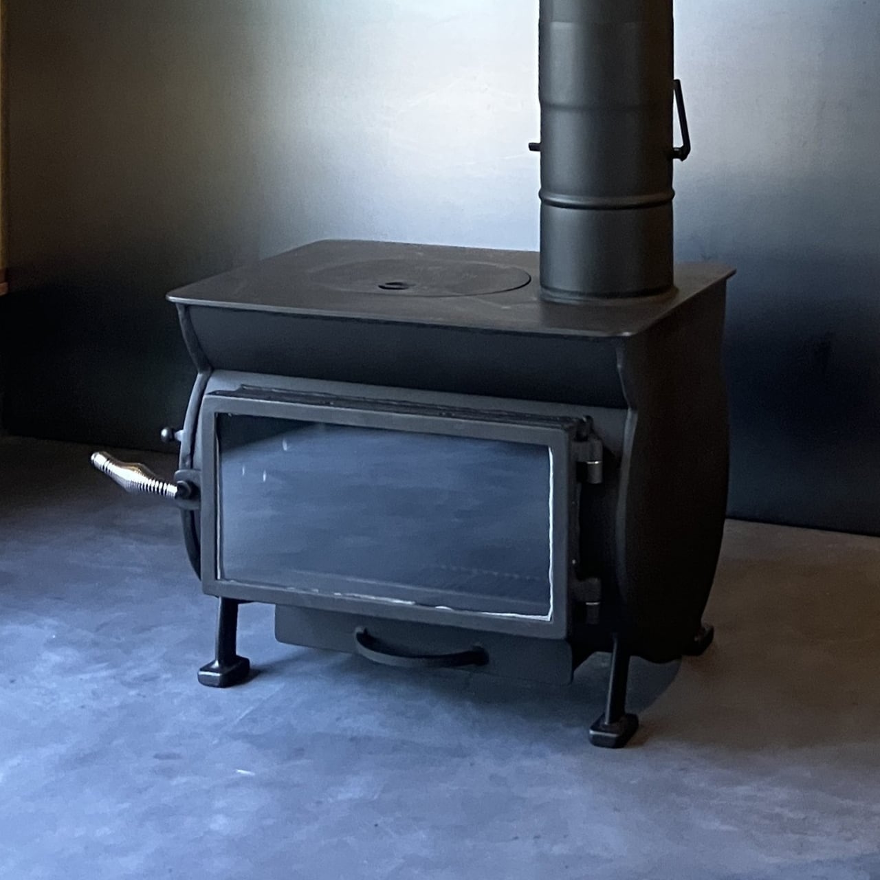 ガラス窓に付いた煤は薪ストーブ用ガラスクリーナーで拭き取ってください。